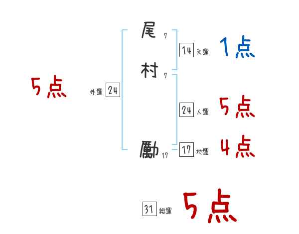 尾村勵さんの画数の鑑定結果