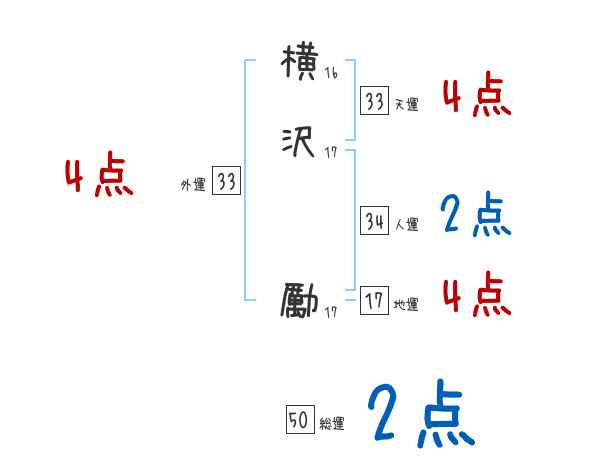横沢勵さんの画数の鑑定結果