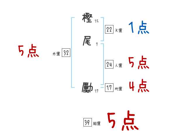 樫尾勵さんの画数の鑑定結果
