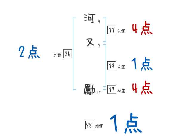 河又勵さんの画数の鑑定結果