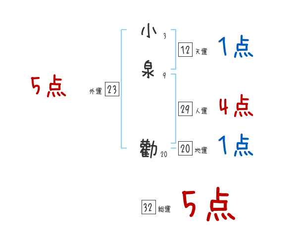 小泉勸さんの画数の鑑定結果