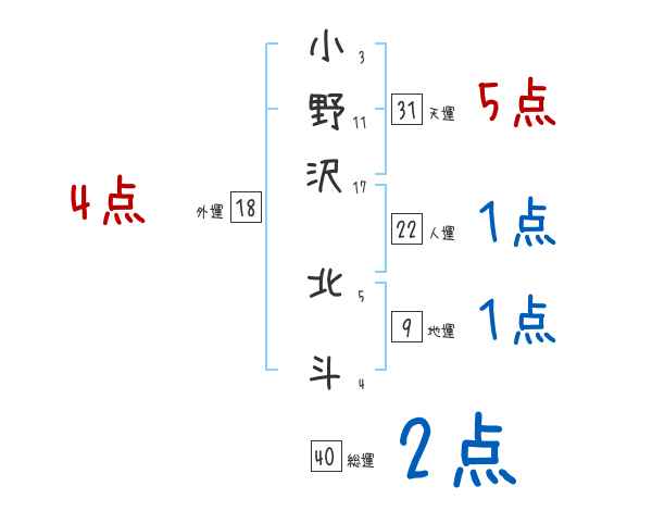 小野沢北斗さんの画数の鑑定結果