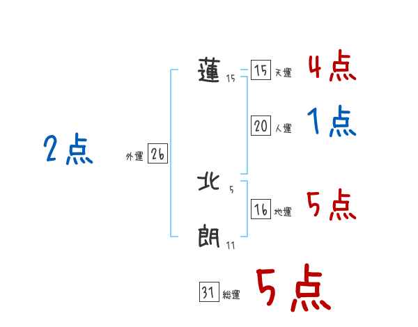 蓮北朗さんの画数の鑑定結果