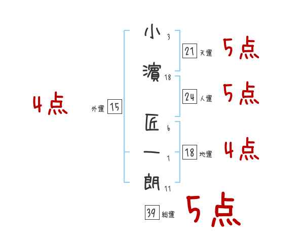 小濵匠一朗さんの画数の鑑定結果