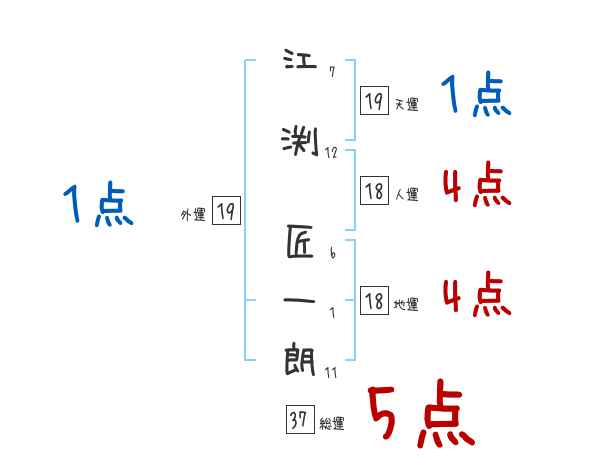 外運![]() | 江渕匠一朗さんの外運は19画の1つ星!優れた才能を持ちますが、協調性が足りないことも。周りの人と協力する事を意識しましょう。 生活面を象徴する運勢です。外部から受ける影響力を表し、結婚運、家庭運や職場、環境への順応性を表します。 |