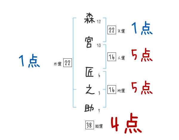 森宮匠之助さんの画数の鑑定結果