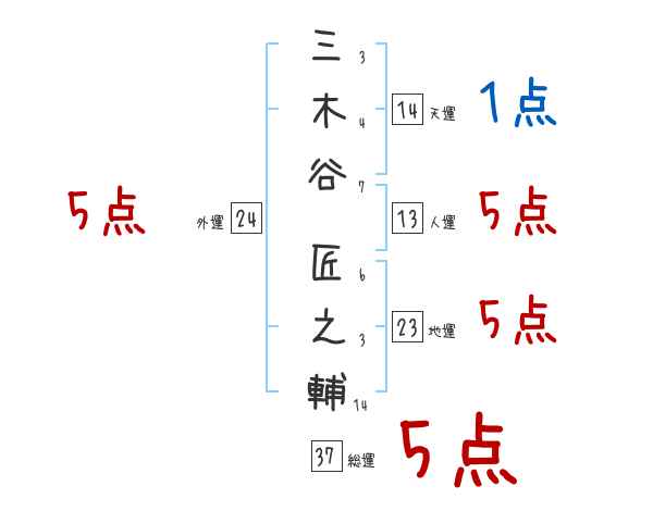 天運![]() | 三木谷匠之輔さんの天運は14画の1つ星!人に対して優しいがストレスを溜め込みがち。人間関係のトラブルを避けるよう気をつけましょう。 家系が持つ宿命的な運勢を表します。祖先から受け継いだ苗字ですので自分の力が及びません。家柄を象徴します。 |