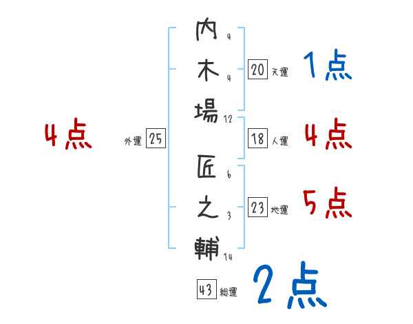 内木場匠之輔さんの画数の鑑定結果