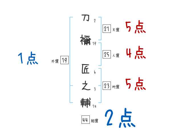 刀禰匠之輔さんの画数の鑑定結果