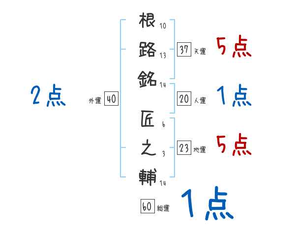 根路銘匠之輔さんの画数の鑑定結果