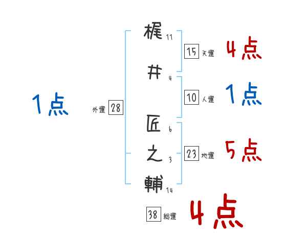 梶井匠之輔さんの画数の鑑定結果