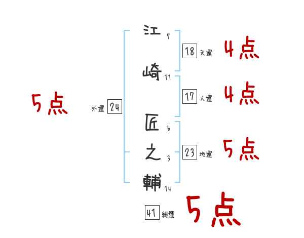 江崎匠之輔さんの画数の鑑定結果