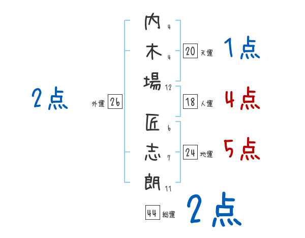 内木場匠志朗さんの画数の鑑定結果