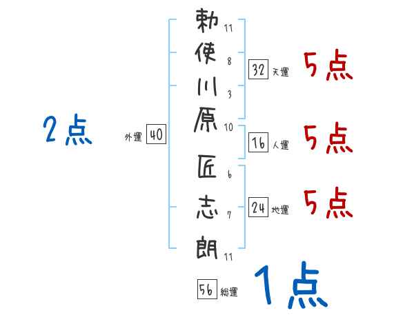 勅使川原匠志朗さんの画数の鑑定結果