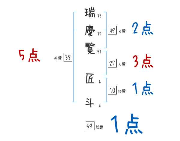 瑞慶覧匠斗さんの画数の鑑定結果