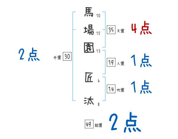 馬場園匠汰さんの画数の鑑定結果
