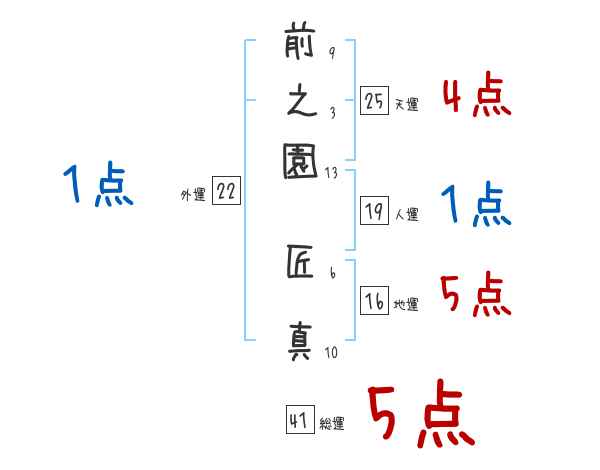 前之園匠真さんの画数の鑑定結果