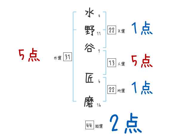 水野谷匠磨さんの画数の鑑定結果