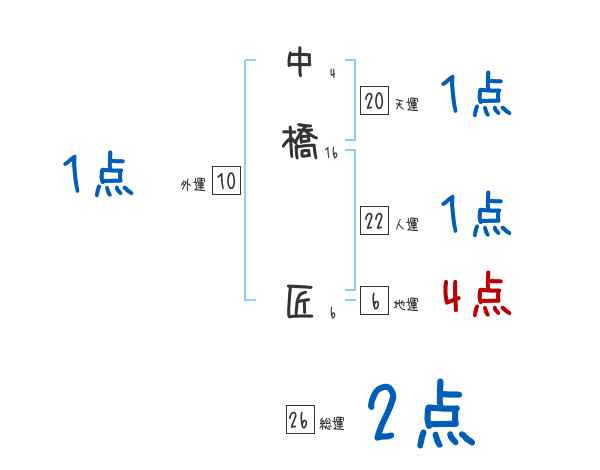 中橋匠さんの画数の鑑定結果