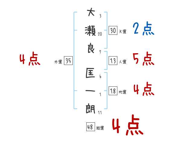 大瀬良匡一朗さんの画数の鑑定結果
