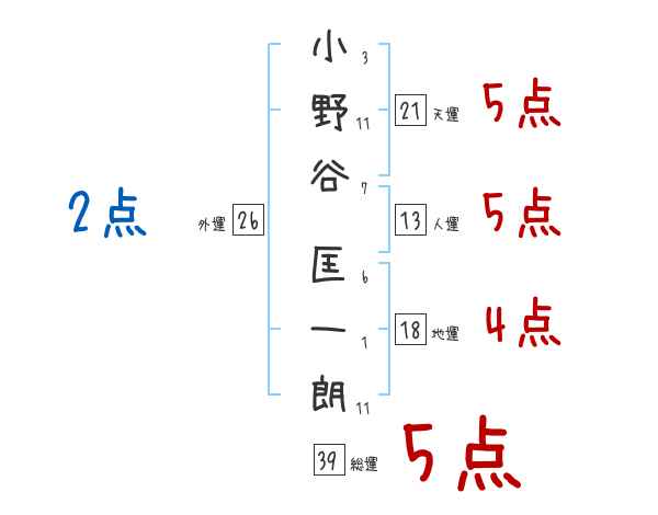小野谷匡一朗さんの画数の鑑定結果