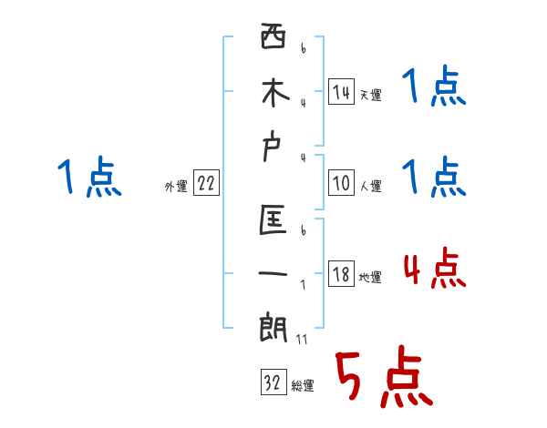 総運![]() | 西木戸匡一朗さんの総運は32画の5つ星!柔軟性があり成功する。チャンスが多く金運が良い。 あなたの人生を表す1番重要な運勢です。生涯を通じて影響する総合運となり、主に50歳以降の晩年期に影響を及ぼします。 |