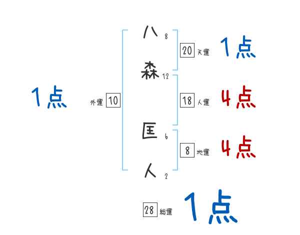 八森匡人さんの画数の鑑定結果