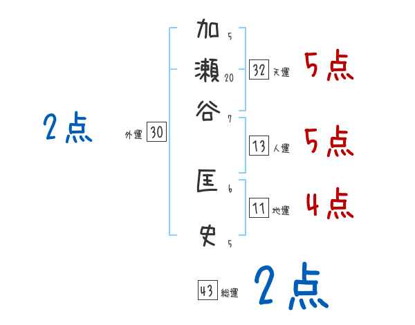 加瀬谷匡史さんの画数の鑑定結果