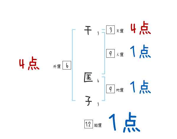 天運![]() | 千匡子さんの天運は3画の4つ星!活動的で才能に恵まれ、多くの信頼を得る。希望に満ち成長する。 家系が持つ宿命的な運勢を表します。祖先から受け継いだ苗字ですので自分の力が及びません。家柄を象徴します。 |