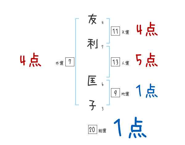 友利匡子さんの画数の鑑定結果