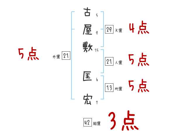 外運![]() | 古屋敷匡宏さんの外運は21画の5つ星!統率力がある。独立し成功する。名誉を手に入れる。 生活面を象徴する運勢です。外部から受ける影響力を表し、結婚運、家庭運や職場、環境への順応性を表します。 |