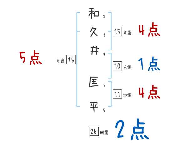 和久井匡平さんの画数の鑑定結果