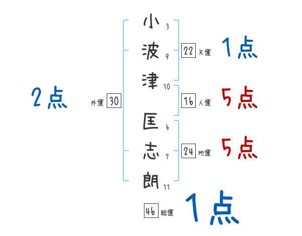 小波津匡志朗さんの画数の鑑定結果