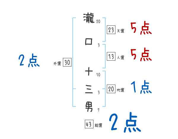瀧口十三男さんの画数の鑑定結果