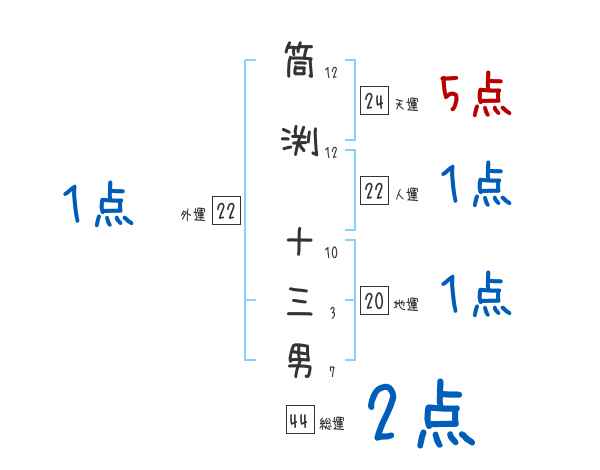 総運![]() | 筒渕十三男さんの総運は44画の2つ星!誠実で慎重な性格。物事を考えすぎないように注意しましょう。 あなたの人生を表す1番重要な運勢です。生涯を通じて影響する総合運となり、主に50歳以降の晩年期に影響を及ぼします。 |