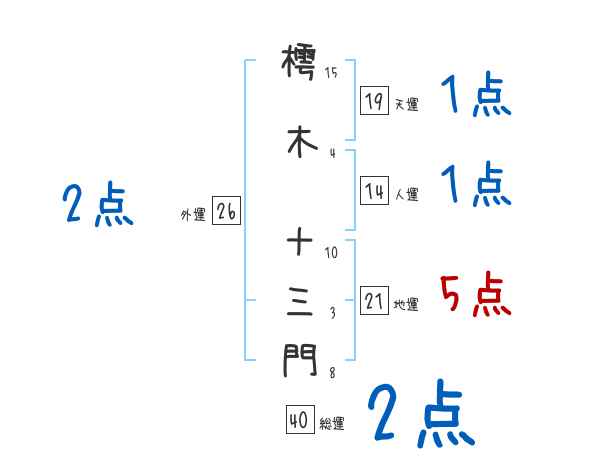 樗木十三門さんの画数の鑑定結果