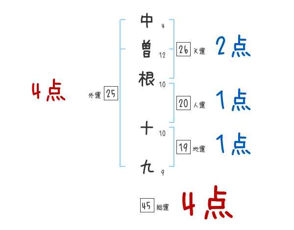 総運![]() | 中曽根十九さんの総運は45画の4つ星!もくもくと物事を進め達成する。地味な努力家。 あなたの人生を表す1番重要な運勢です。生涯を通じて影響する総合運となり、主に50歳以降の晩年期に影響を及ぼします。 |