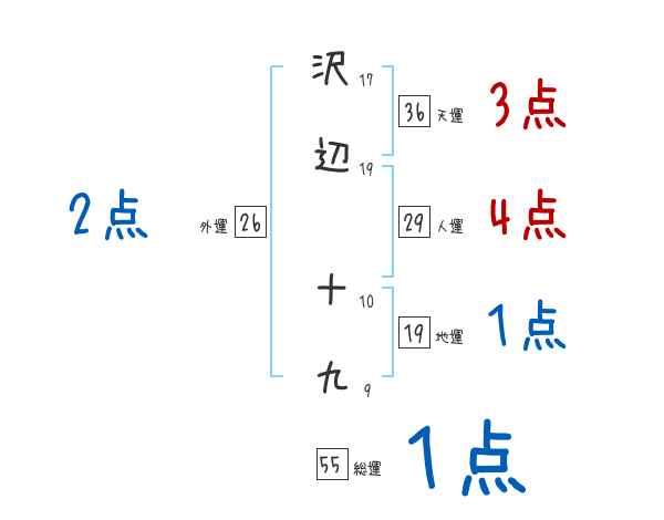 沢辺十九さんの画数の鑑定結果