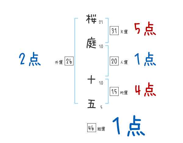 桜庭十五さんの画数の鑑定結果