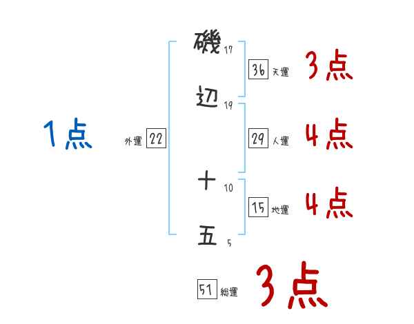 磯辺十五さんの画数の鑑定結果
