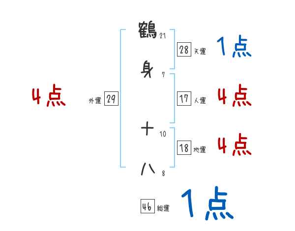鶴身十八さんの画数の鑑定結果
