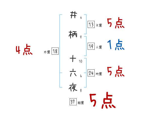 井柄十六夜さんの画数の鑑定結果