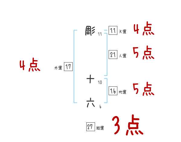彫十六さんの画数の鑑定結果