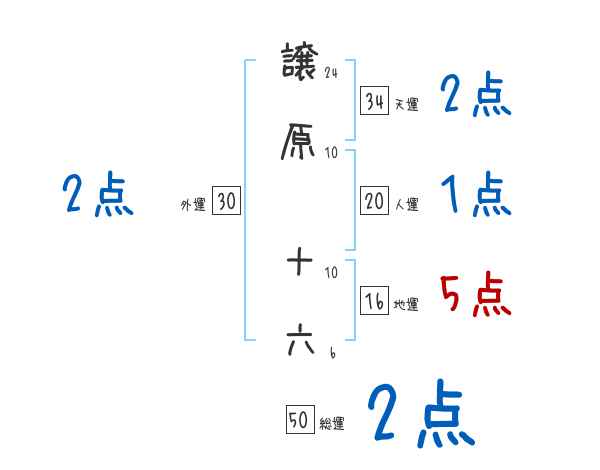 譲原十六さんの画数の鑑定結果