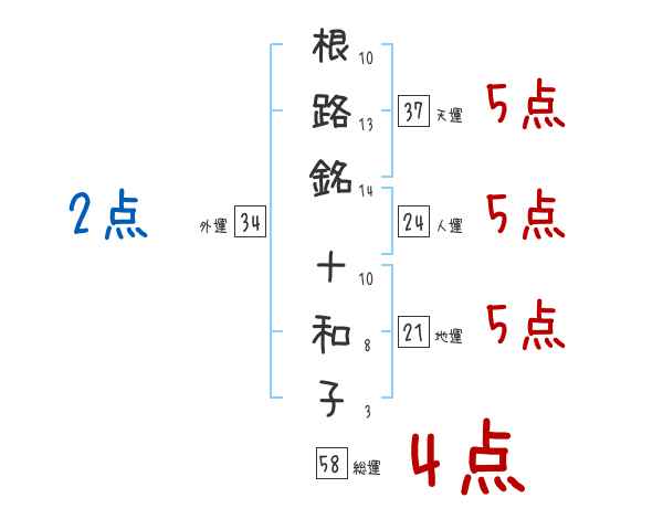 根路銘十和子さんの画数の鑑定結果