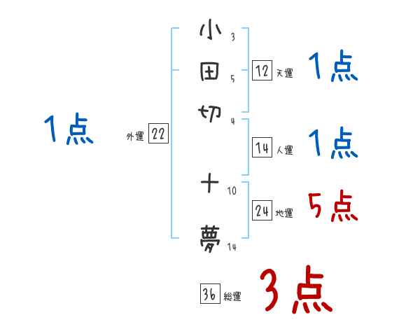 小田切十夢さんの画数の鑑定結果