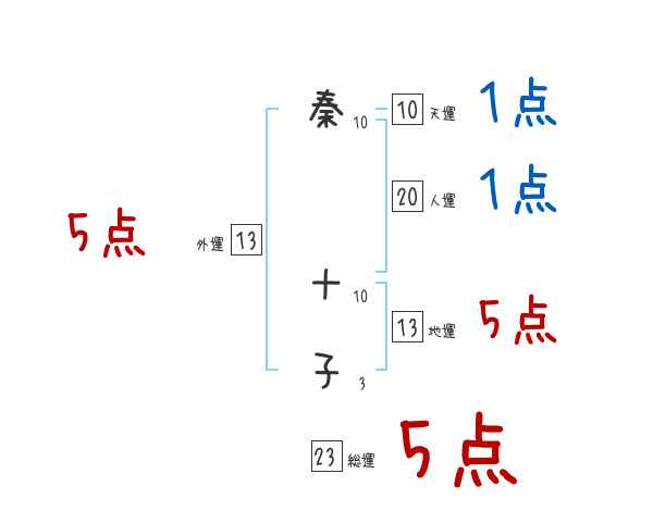 秦十子さんの画数の鑑定結果