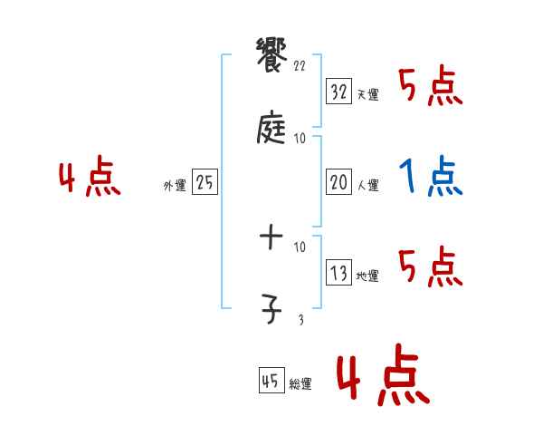 天運![]() | 饗庭十子さんの天運は32画の5つ星!柔軟性があり成功する。チャンスが多く金運が良い。 家系が持つ宿命的な運勢を表します。祖先から受け継いだ苗字ですので自分の力が及びません。家柄を象徴します。 |