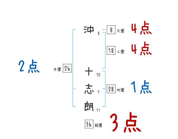 天運![]() | 沖十志朗さんの天運は8画の4つ星!勤勉家。根気強く努力し成功する。忍耐力がある。 家系が持つ宿命的な運勢を表します。祖先から受け継いだ苗字ですので自分の力が及びません。家柄を象徴します。 |