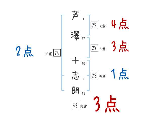 芦澤十志朗さんの画数の鑑定結果